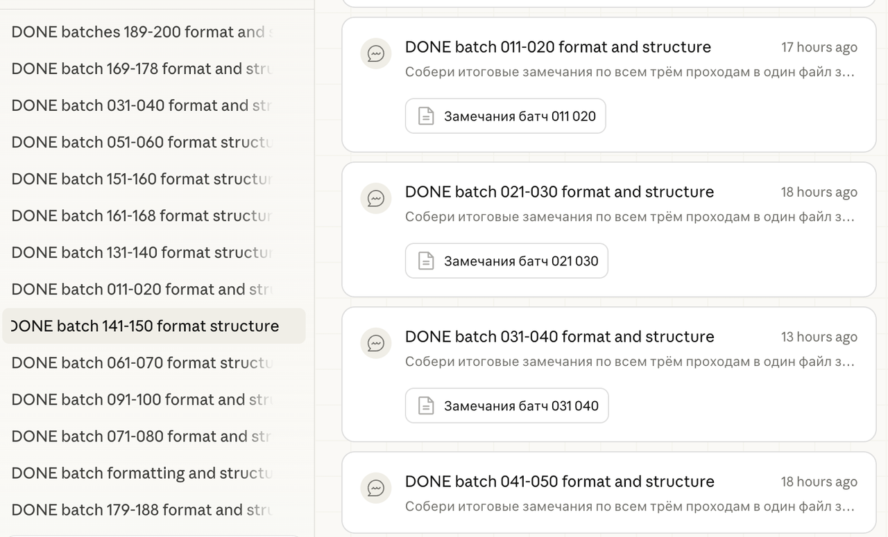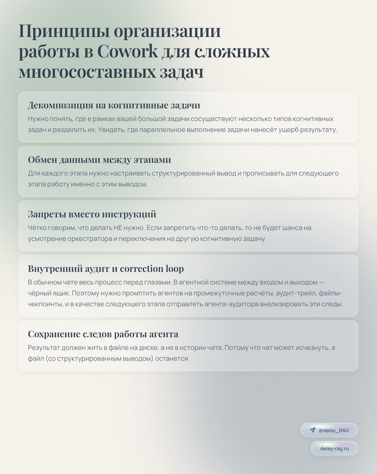 — Работу нужно было поделить на последовательные этапы, каждый в отдельном чате в Cowork— После каждого этапа нужен аудит проделанной работы— На каждый этап своя короткая четкая методика